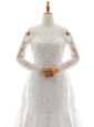Warning: number_format() expects parameter 2 to be long, string given in /home/fashonos/domains/fashionos.com/public_html/includes/classes/currencies.php on line 52 High Quality Off the Shoulder Long Sleeves Lace With Brush Train Lace Up Wedding Dress in White for with Beading and Lace- HK$