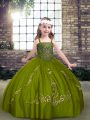 High Quality Olive Green Tulle Lace Up Straps Sleeveless Floor Length Girls Pageant Dresses Beading
