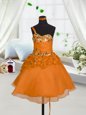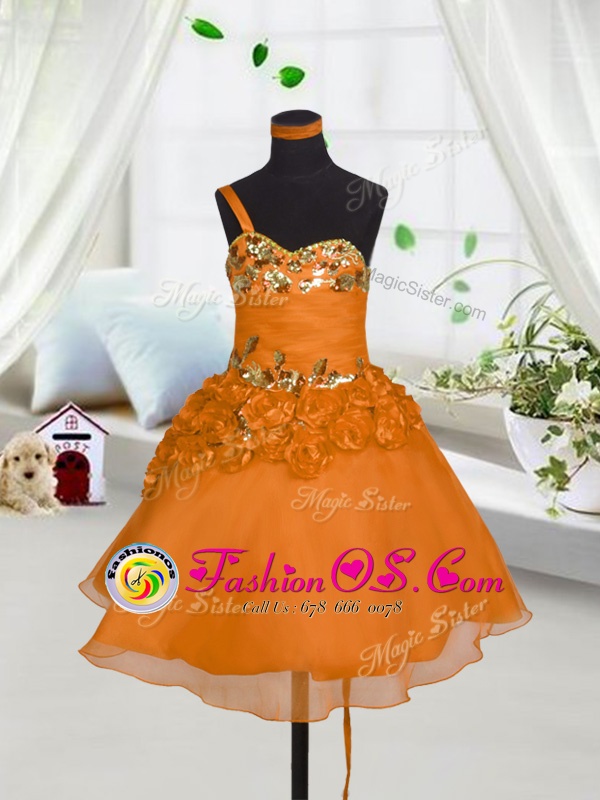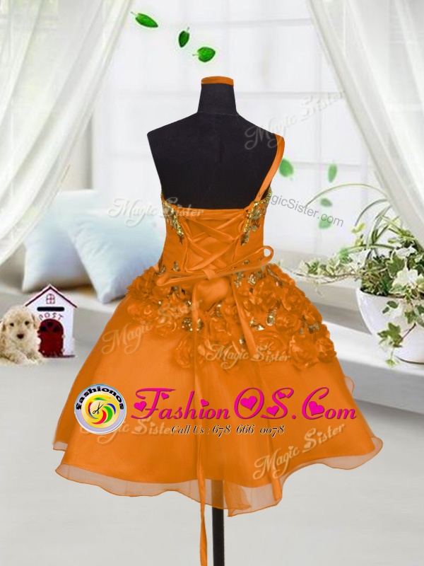 Home >  Special Occasion Dresses >  New Style Little Girl Pageant Dresses > High Quality Orange Red A-line Beading and Hand Made Flower Kids Pageant Dress Lace Up Organza Sleeveless Mini Length