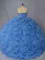 High Quality Organza Sleeveless 15th Birthday Dress Brush Train and Beading and Ruffles