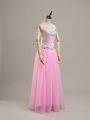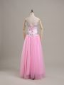 High Quality Pink Tulle Lace Up Dress for Prom Sleeveless Beading