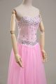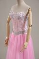 Home >  Prom Dresses >  Discount Prom Dresses > High Quality Pink Tulle Lace Up Dress for Prom Sleeveless Beading