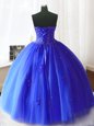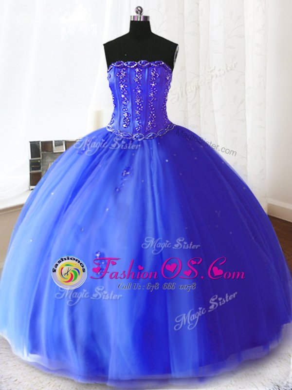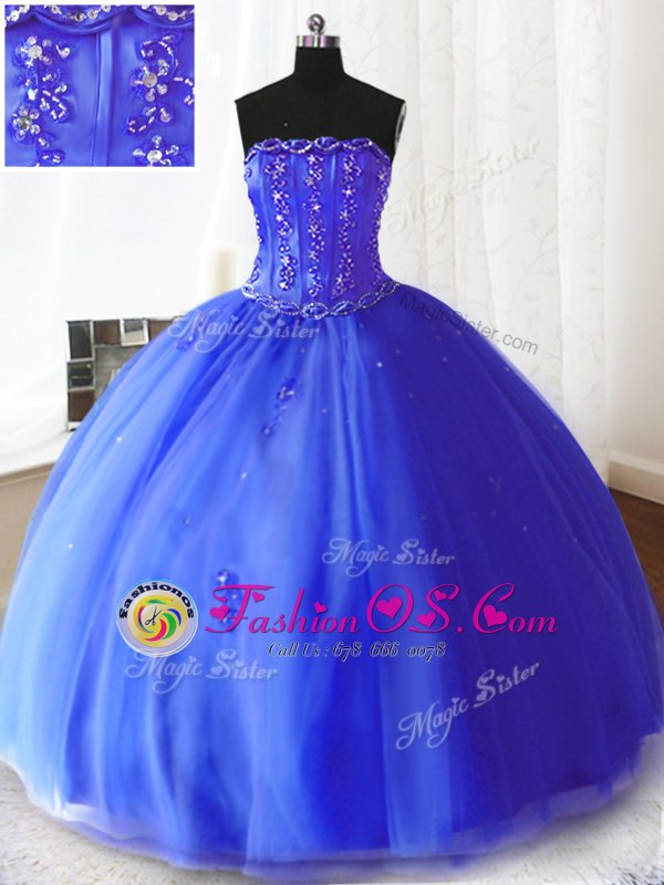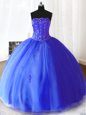 High Quality Royal Blue Strapless Neckline Beading and Appliques Quinceanera Gowns Sleeveless Lace Up