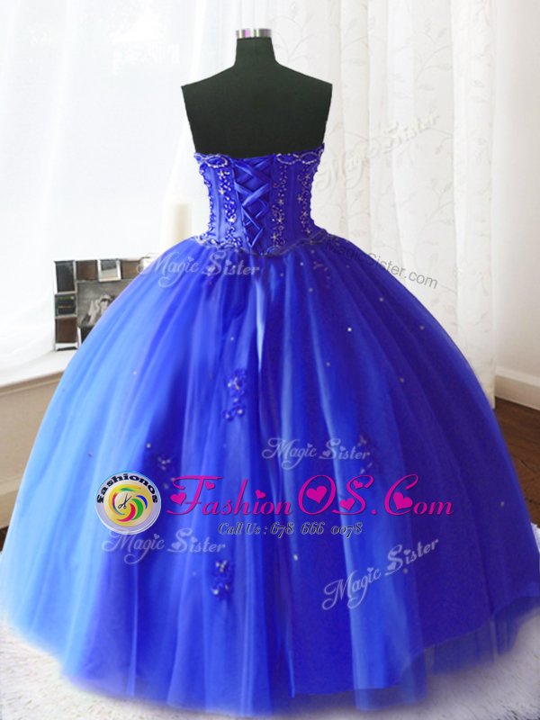 Home >  Quinceanera Dresses >  Fast Delivery Quinceanera Dresses > High Quality Royal Blue Strapless Neckline Beading and Appliques Quinceanera Gowns Sleeveless Lace Up