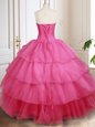 High Quality Ruffled Ball Gowns 15 Quinceanera Dress Hot Pink Sweetheart Organza Sleeveless Floor Length Lace Up
