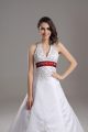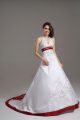 High Quality Satin Sleeveless Wedding Dresses Brush Train and Beading and Embroidery