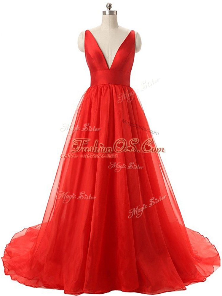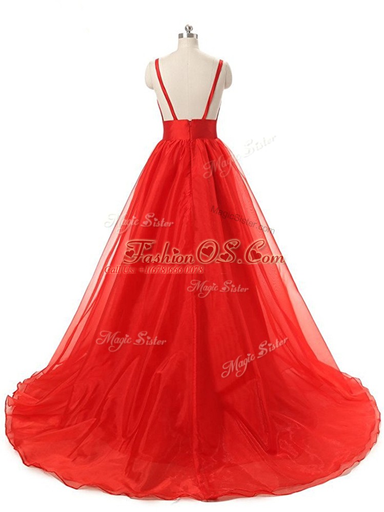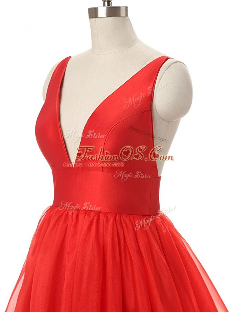Home >  Prom Dresses >  Christmas Party Dresses > High Quality Sleeveless Brush Train Backless Ruching Casual Dresses