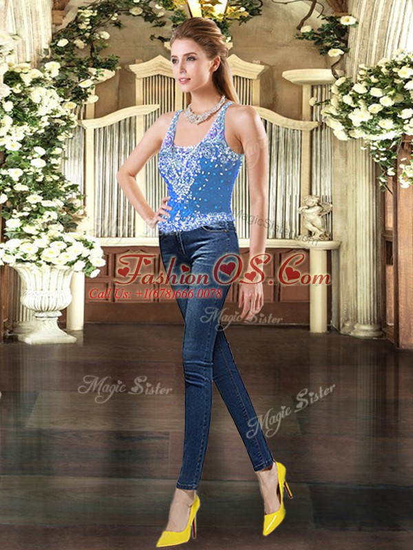 High Quality Straps Sleeveless Lace Up Quinceanera Gown Blue Tulle