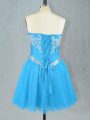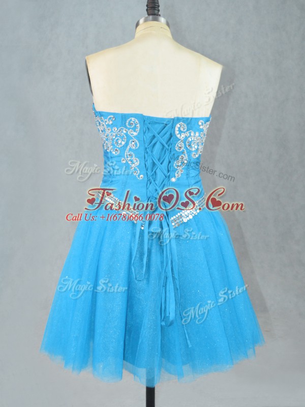High Quality Sweetheart Sleeveless Evening Dress Mini Length Beading Aqua Blue Tulle