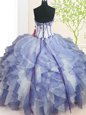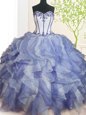High Quality Sweetheart Sleeveless Lace Up Vestidos de Quinceanera Blue And White Organza