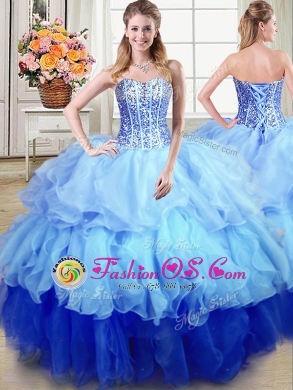 High Quality Three Piece Multi-color Sleeveless Floor Length Ruffles and Sequins Lace Up 15th Birthday Dress