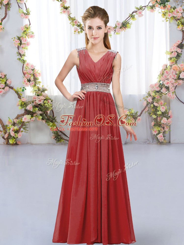 High Quality Wine Red Chiffon Lace Up Dama Dress for Quinceanera Sleeveless Floor Length Beading and Belt