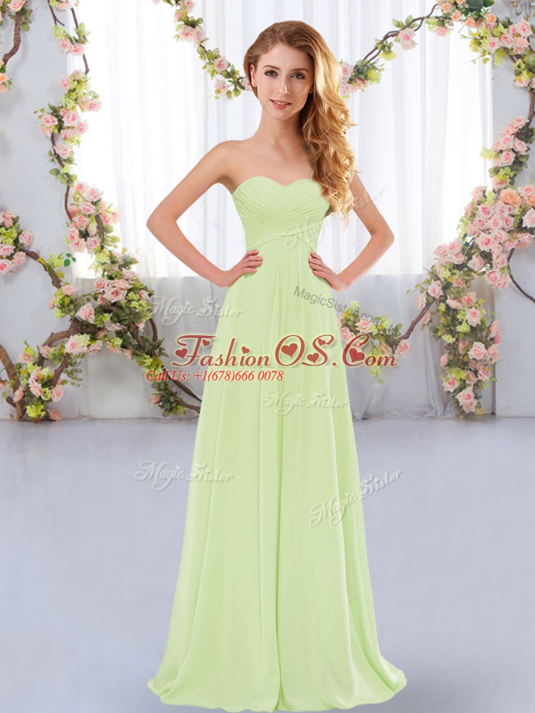 High Quality Yellow Green Dama Dress for Quinceanera Wedding Party with Ruching Sweetheart Sleeveless Lace Up