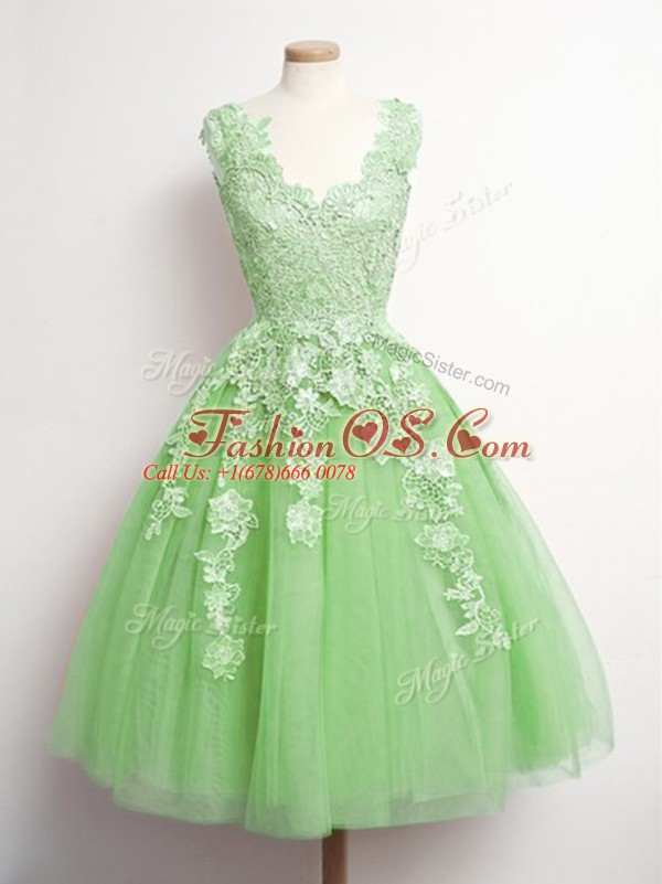 High Quality Yellow Green Sleeveless Tulle Lace Up Quinceanera Dama Dress for Prom and Party and Wedding Party