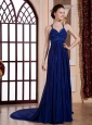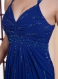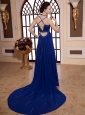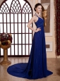 High Slit Beading and Royal Blue For 2013 Custom Made Evening Dress