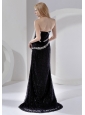 This stunning elegant black dress has a romantic charm that no others can conquer. It features a sweetheart neckline, lace texture and a gorgeous beaded skirt with a split on the front that creates a sexy and hot look. The back of the dress features a lovely brush train and a tight zipper up closure. A perfect choice for any occasion.