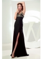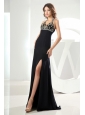 Home >  Prom Dresses >  Best Prom Dresses > High Slit Beading Halter Column Prom Dress