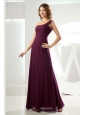 Look and feel like a million in this long prom dress at your prom! The burgundy sassy dress which is simple yet very elegant features one shoulder and a ruched bodice. The soft and flowing chiffon material is very comfortable to wear. A hidden zipper makes for easy off and on and secures the dress in place.