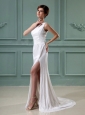 Home >  Prom Dresses >  Best Prom Dresses > High Slit One Shoulder Empire Chiffon Brush / Sweep Prom Dress