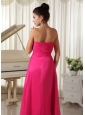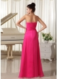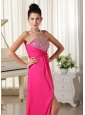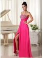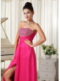 High Slit Strapless and Beaded Decorate Bust Hot Pink Prom Dress