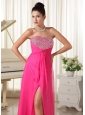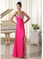 Home >  Prom Dresses >  New Arrivals > High Slit Strapless and Beaded Decorate Bust Hot Pink Prom Dress