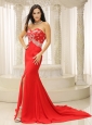 High Slit Sweetheart Appliques Decorate Bust For Celebrity Dress In South Carolina