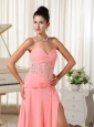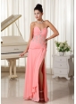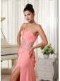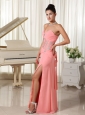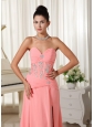 Home >  Evening Dresses > High Slit Watermelon Sweetheart Chiffon Evening Dress With Waist Beading
