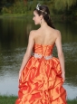 High-Low Orange Red Taffeta Dama Dresses for Quinceanera  With Strapless Lace-up