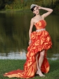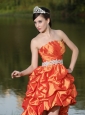 Home >  Special Occasion Dresses >  Dama Dresses for Quinceanera > High-Low Orange Red Taffeta Dama Dresses for Quinceanera With Strapless Lace-up