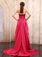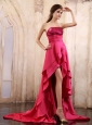 High-low Prom Dress With Sequin Coral Red Elastic Woven Satin
