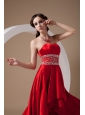 High-low Red A-line Prom Dress Strapless Elastic Wove Satin Beading