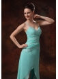 High-low Spaghetti Straps Appliques and Ruch For Turquoise Prom Dress In Ellijay Georgia