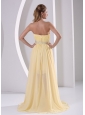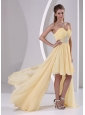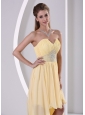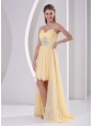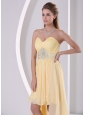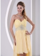 High-low Sweetheart Beaded Light Yellow Chiffon Detachable Prom / Homecoming Dress For Custom Made