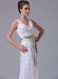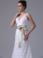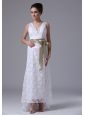 High-low V-Neck Lace Stylish Customize Wedding Dress With Sashes/Ribbons