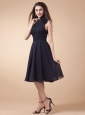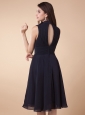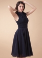 High-neck and Ruched Bodice For Custom Made Navy Blue Prom Dress