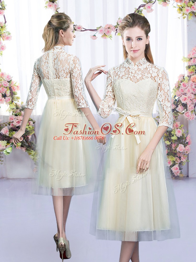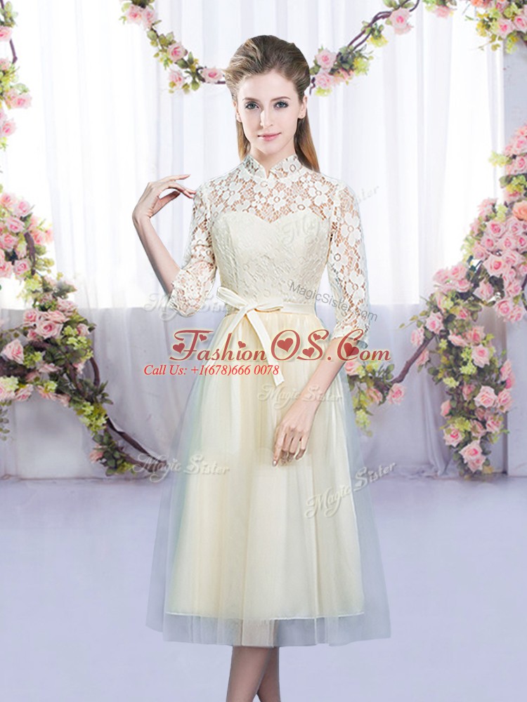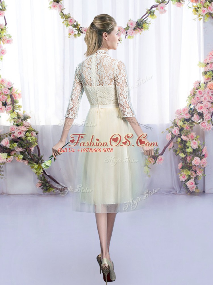 High-neck Half Sleeves Zipper Quinceanera Court Dresses Champagne Tulle