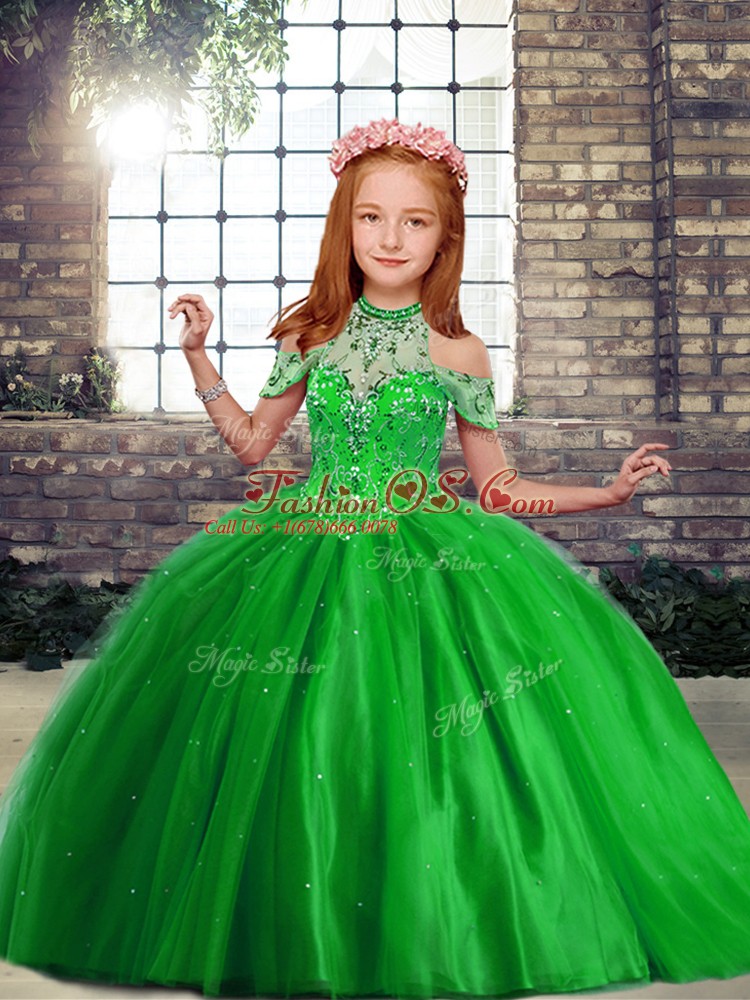 Home >  Special Occasion Dresses >  Lovely Little Girl Pageant Dresses > High-neck Lace Up Beading Little Girls Pageant Dress Sleeveless