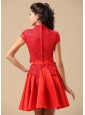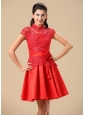 High-neck Red Mother Of The Bride Dress With Sash Lace and Taffeta In Juneau