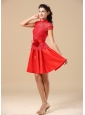 Home >  Special Occasion Dresses >  Mother of the Bride Dresses > High-neck Red Mother Of The Bride Dress With Sash Lace and Taffeta In Juneau