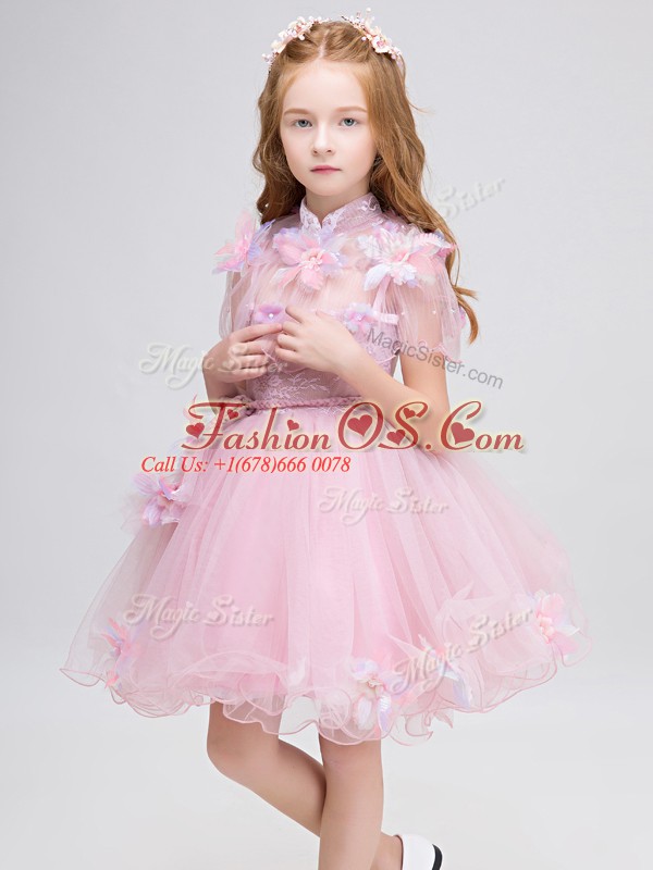 Home >  Special Occasion Dresses >  2018 flower Girl Dresses > High-neck Short Sleeves Tulle Flower Girl Dresses for Less Appliques Zipper