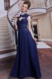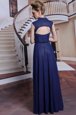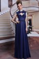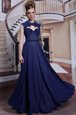 High-neck Sleeveless Zipper Evening Gowns Navy Blue Chiffon