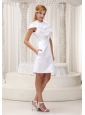 High-neck White Ruffled Decorate Bust Taffeta and Mini-length Mother Of The Bride Dress Dress For 2013