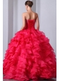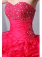 Hot Pink A-Line / Princess Sweetheart Beading and Ruffles Quinceanea Dress Floor-length Organza