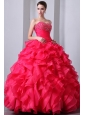 Home >  Quinceanera Dresses >  Pretty Quinceanera Dresses > Hot Pink A-Line / Princess Sweetheart Beading and Ruffles Quinceanea Dress Floor-length Organza