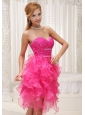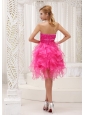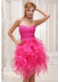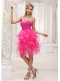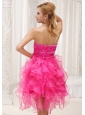 Hot Pink A-line Prom / Cocktail Dress For 2013 Beaded Decorate Bust Organza With Ruffles