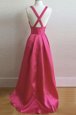 Hot Pink A-line Satin V-neck Sleeveless Pleated Floor Length Criss Cross Prom Evening Gown