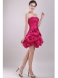 Hot Pink A-line Strapless Mini-length Taffeta Hand Made Flower Prom / Homecoming Dress