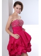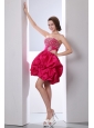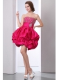 Hot Pink A-line Strapless Short Prom Dress Taffeta Beading Mini-length