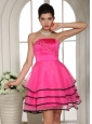 Hot Pink and Black Homecoming Dress With Appliques and Beading For Custom Made
