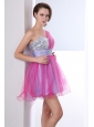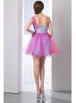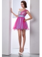 Hot Pink and Lilac A-line One Shoulder Beading Prom Dress Mini-length Organza